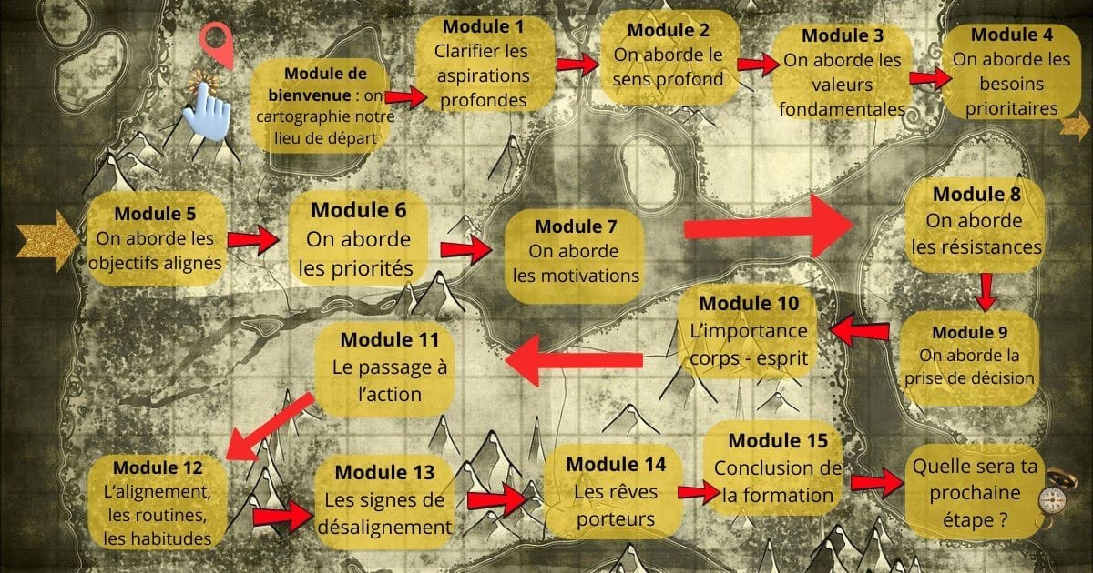 Je vais vous expliquer ce que sont les aspirations profondes ainsi que les piliers qui soutiennent les aspirations. Chaque module indépendant est en lien avec 1 pilier pour que les apprentissages soient plus faciles à intégrer.